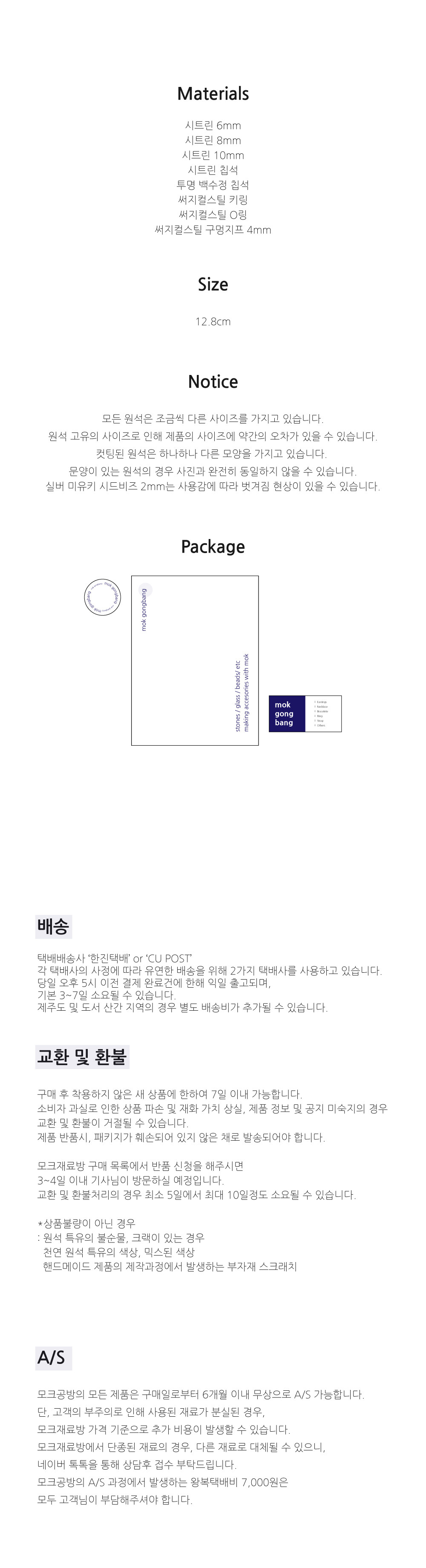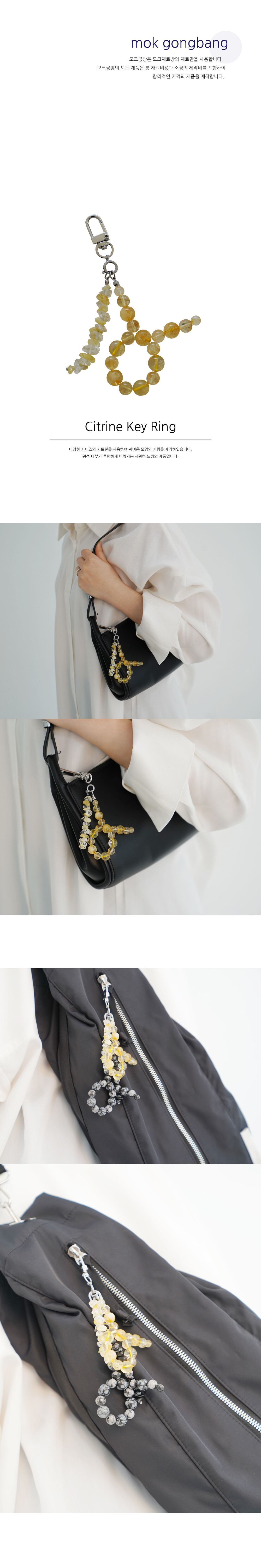 다양한 사이즈의 시트린을 사용해 귀여운 모양의 키링을 제작했습니다. 원석 내부가 투명하게 비춰지는 시원한 느낌의 제품입니다.