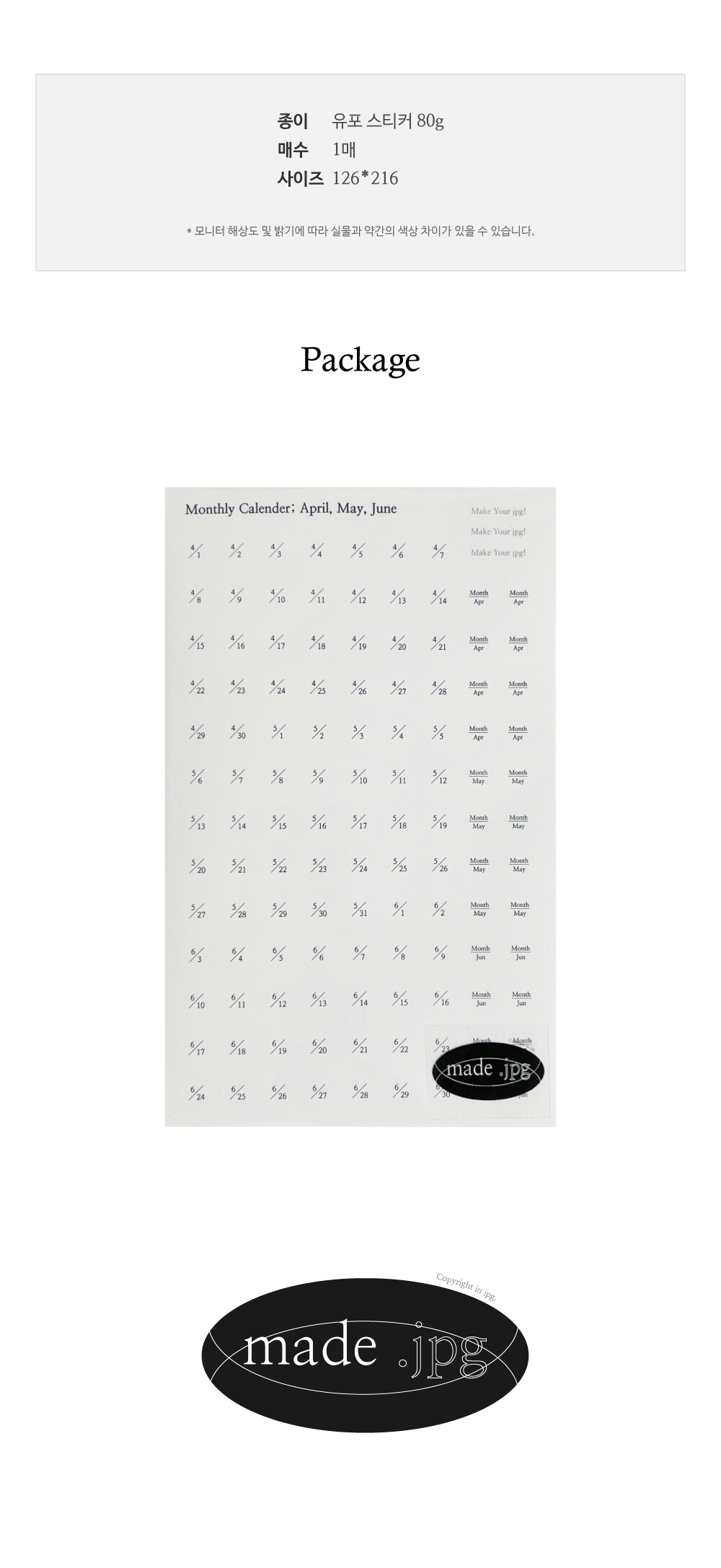 [made.jpg.제이피지잡화점] 4-6월_monthly calender sticker