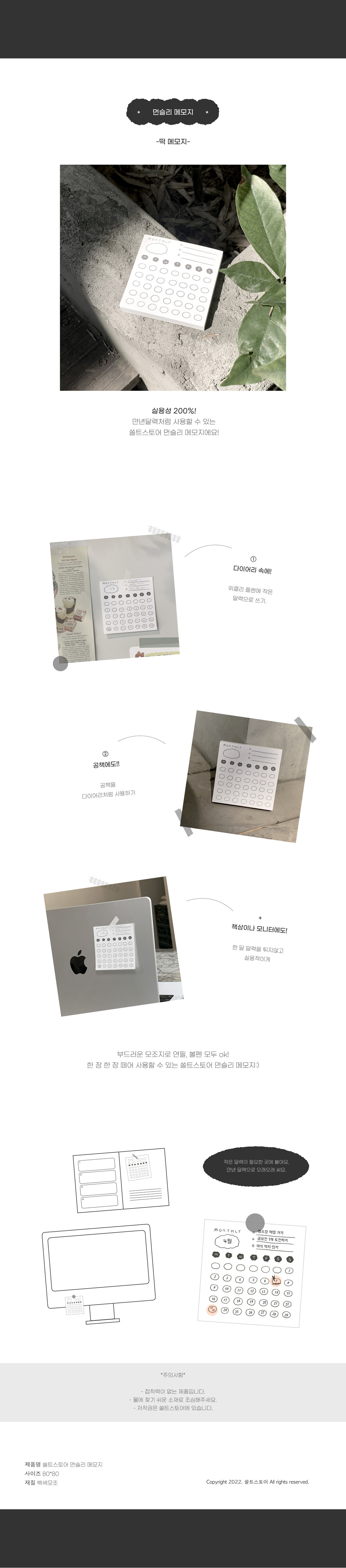 만년 달력처럼 사용할 수 있는 쏠트스토어 먼슬리 메모지에요!