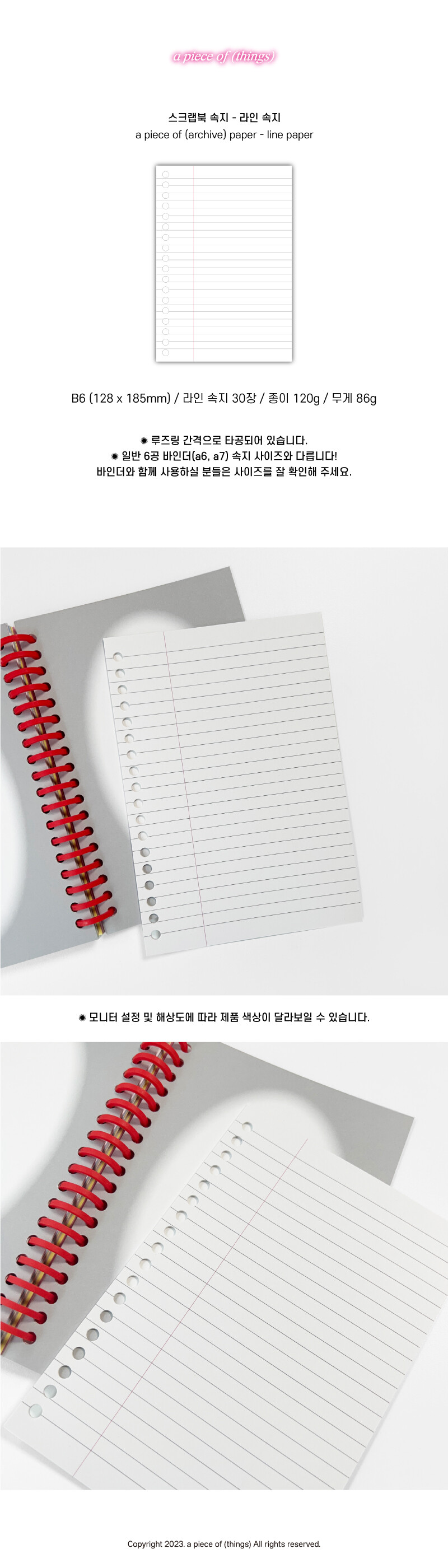 [어피스오브띵즈] a piece of (archive) paper 스크랩북 속지 - 라인 속지(30장)