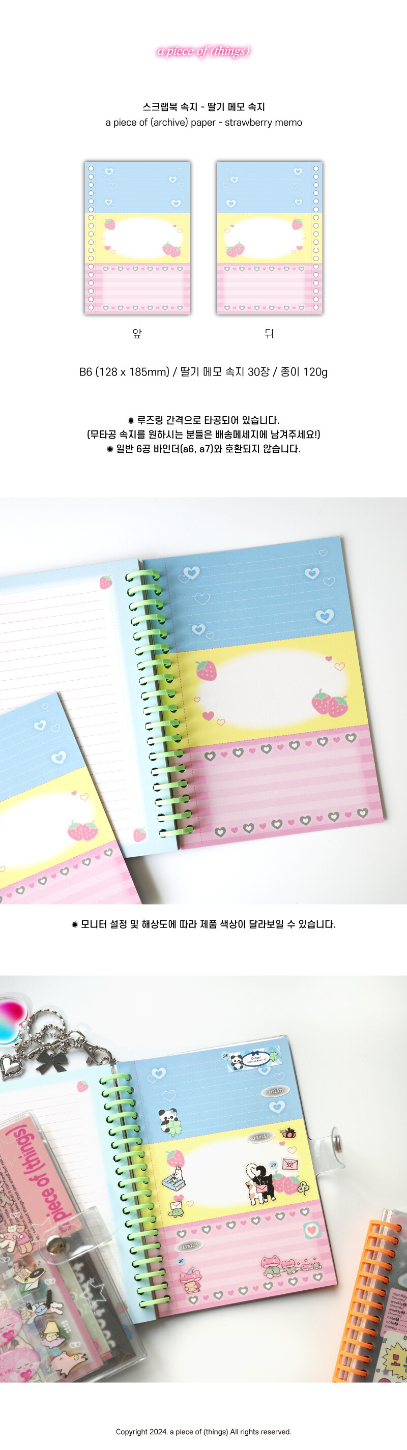- 일반 6공 바인더와 호환되지 않습니다.
