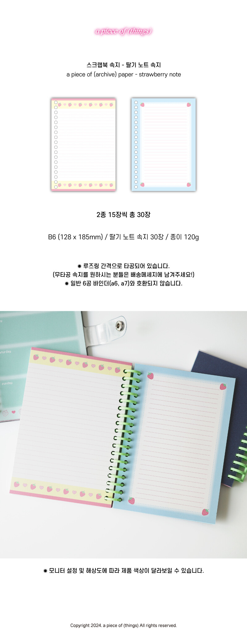 - 일반 6공 바인더와 호환되지 않습니다.