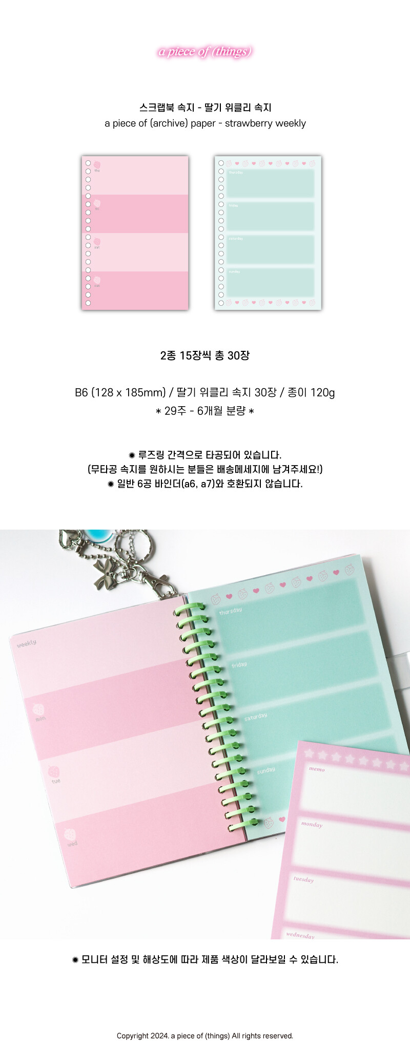 [어피스오브띵즈] 스크랩북 속지 - 딸기 위클리 속지(30장)