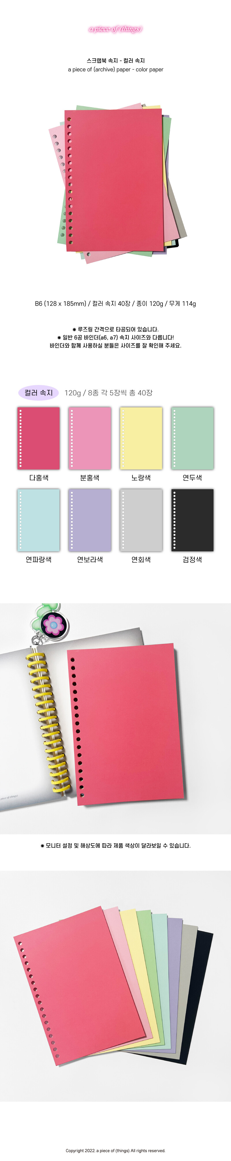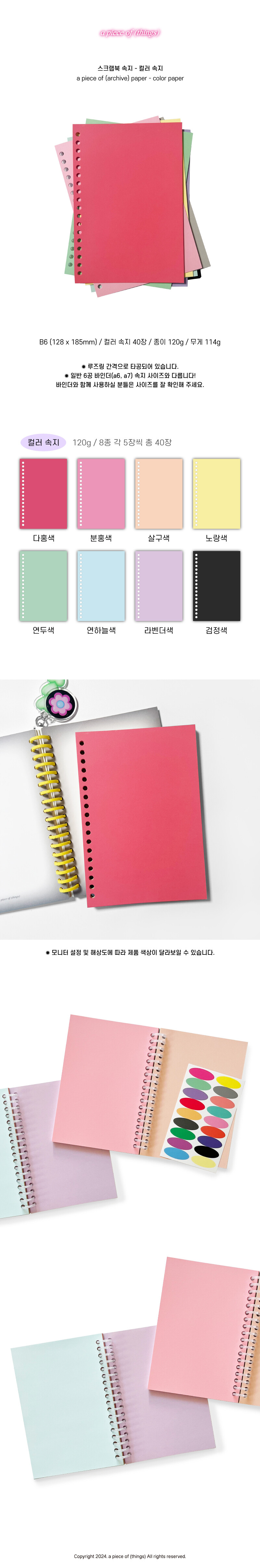 [어피스오브띵즈] a piece of (archive) paper 스크랩북 속지 - 컬러 속지(40장)_재입고 (리뉴얼 이전 버전 / 리뉴얼 버전)