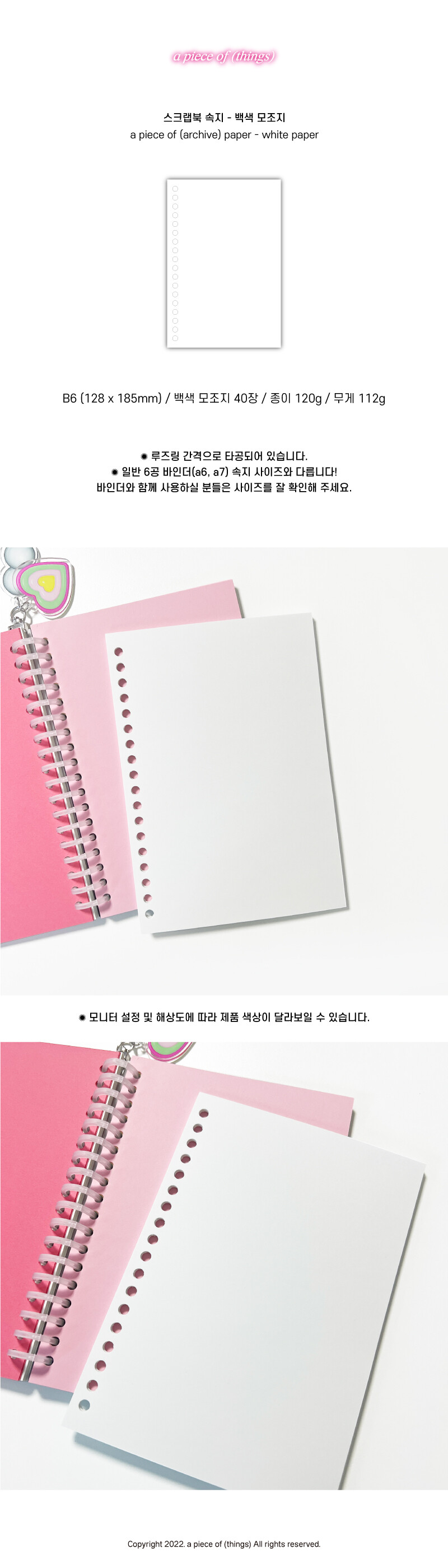 [어피스오브띵즈] a piece of (archive) paper 스크랩북 속지 - 백색 모조지(40장)_재입고
