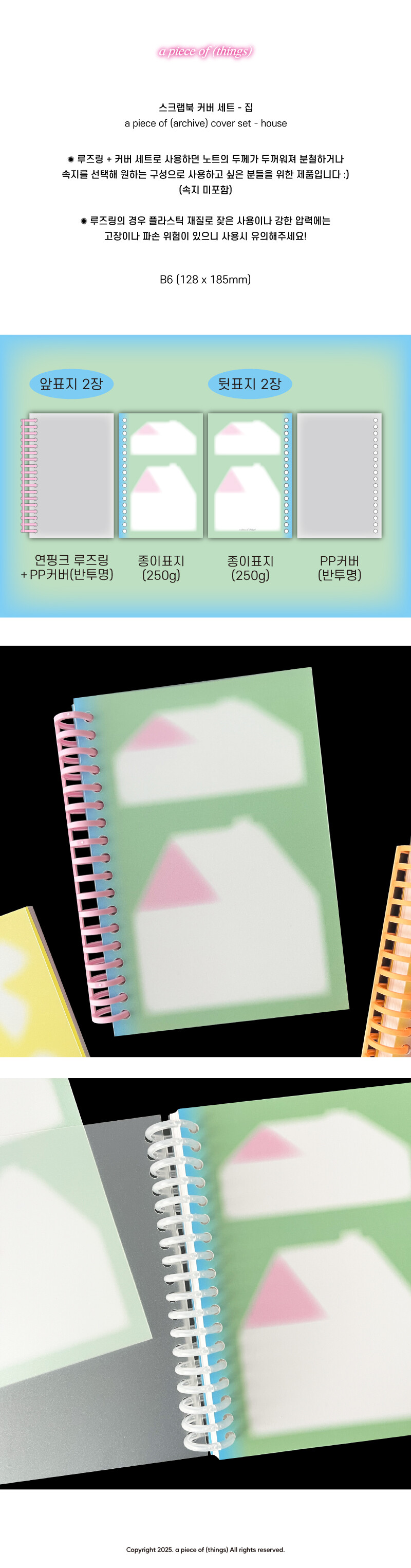 - 앞표지 2장 + 뒷표지 2장 + 연핑크 루즈링 + pp커버 (반투명)