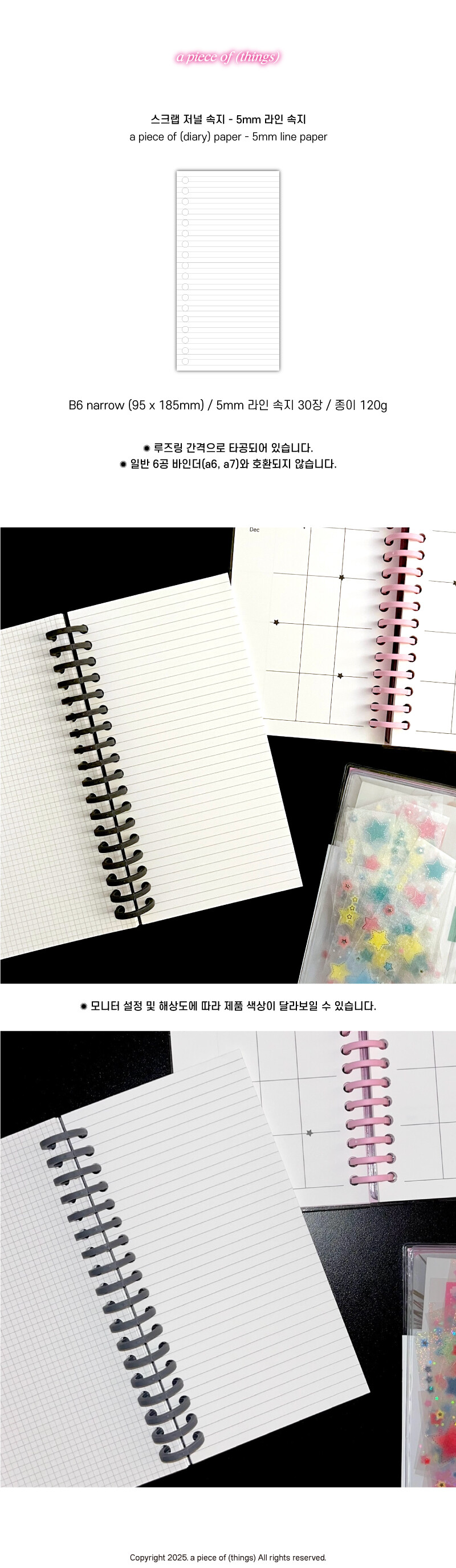 [어피스오브띵즈] B6 내로우 스크랩 저널 속지 - 5mm 라인 속지(30장)
