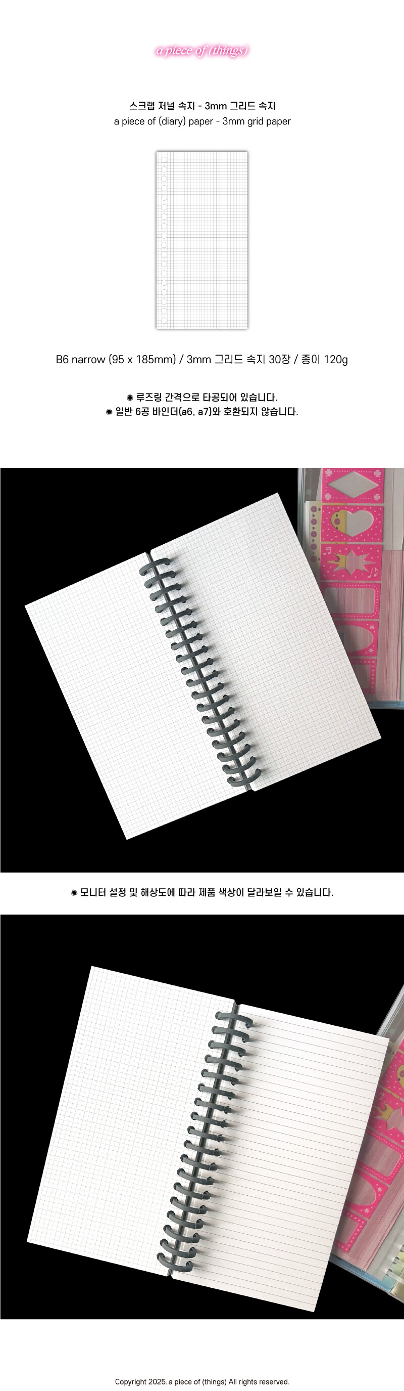 [어피스오브띵즈] B6 내로우 스크랩 저널 속지 - 3mm 그리드 속지(30장)