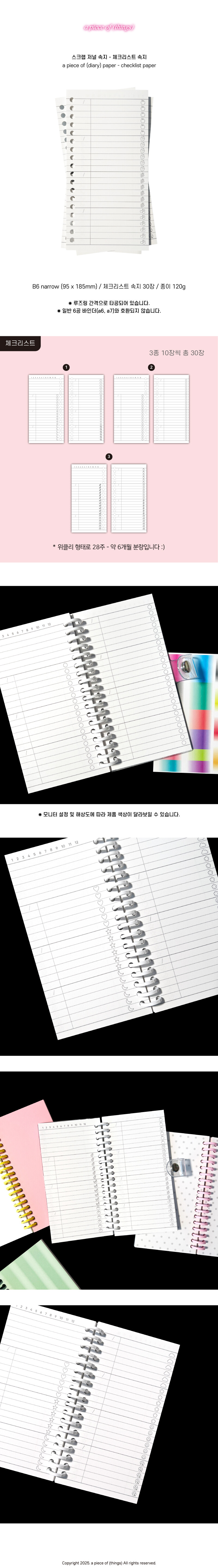 [어피스오브띵즈] B6 내로우 스크랩 저널 속지 - 체크리스트 속지(30장)