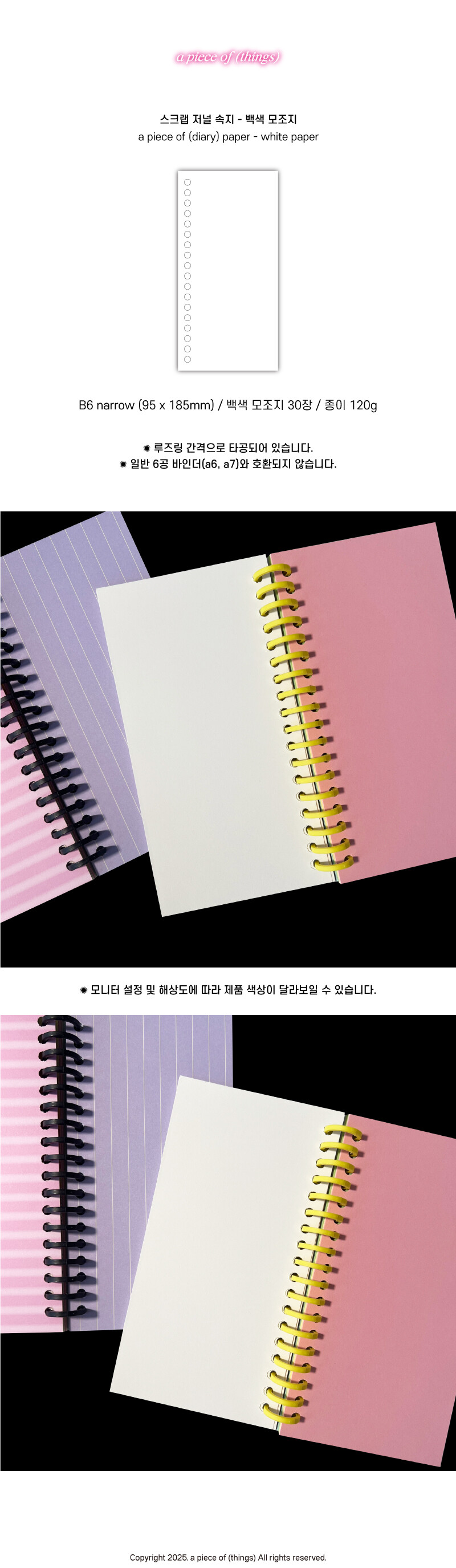 [어피스오브띵즈] B6 내로우 스크랩 저널 속지 - 백색 모조지(30장)