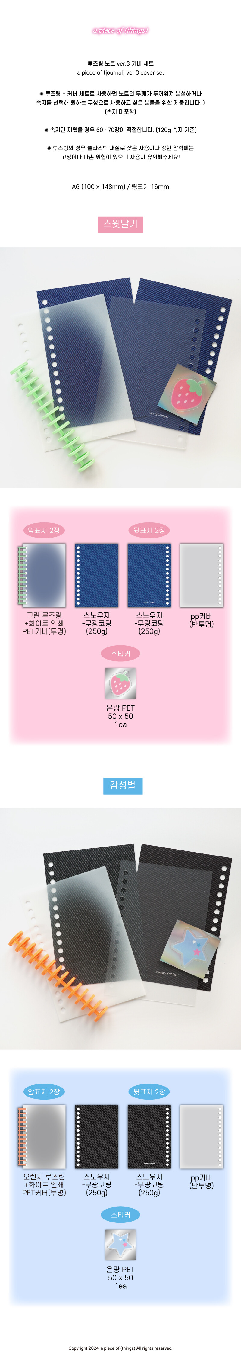 [어피스오브띵즈] 루즈링 노트 ver.3 커버 세트 2종 (스윗딸기 / 감성별)