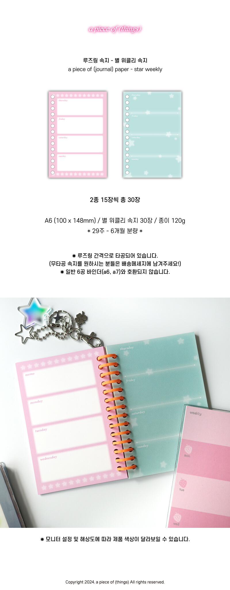 [어피스오브띵즈] 루즈링 속지 - 별 위클리 속지(30장)