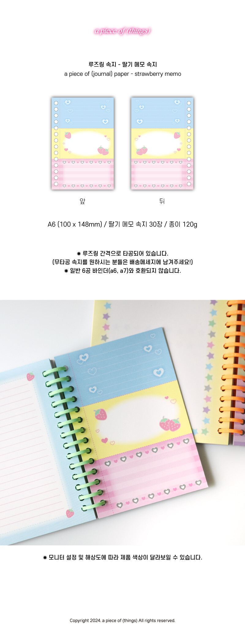 [어피스오브띵즈] 루즈링 속지 - 딸기 메모 속지(30장)