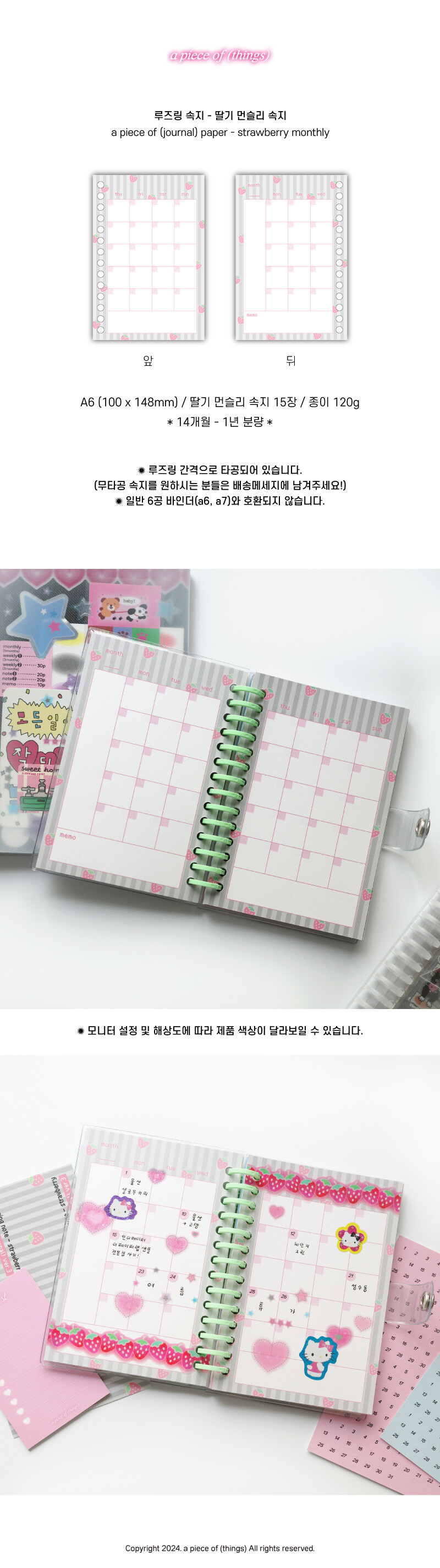 [어피스오브띵즈] 루즈링 속지 - 딸기 먼슬리 속지(15장)