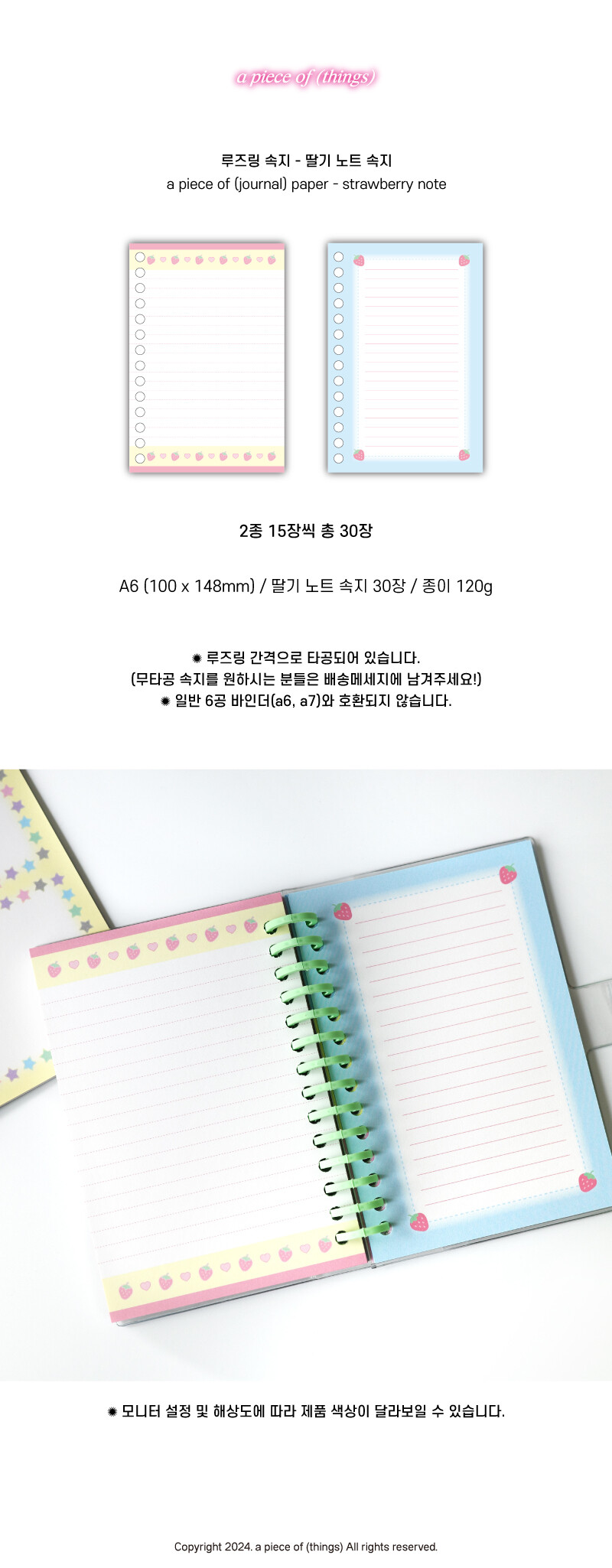 [어피스오브띵즈] 루즈링 속지 - 딸기 노트 속지(30장) _재입고
