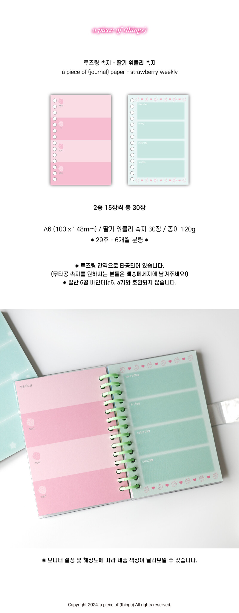 [어피스오브띵즈] 루즈링 속지 - 딸기 위클리 속지(30장)