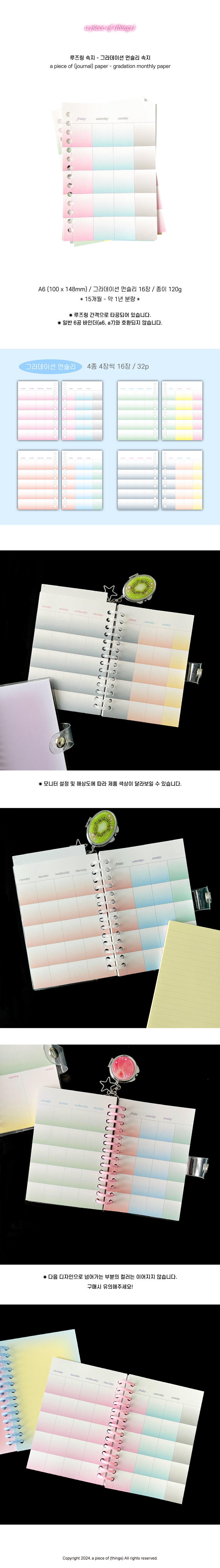 [어피스오브띵즈] 루즈링 속지 - 그라데이션 먼슬리(16장)