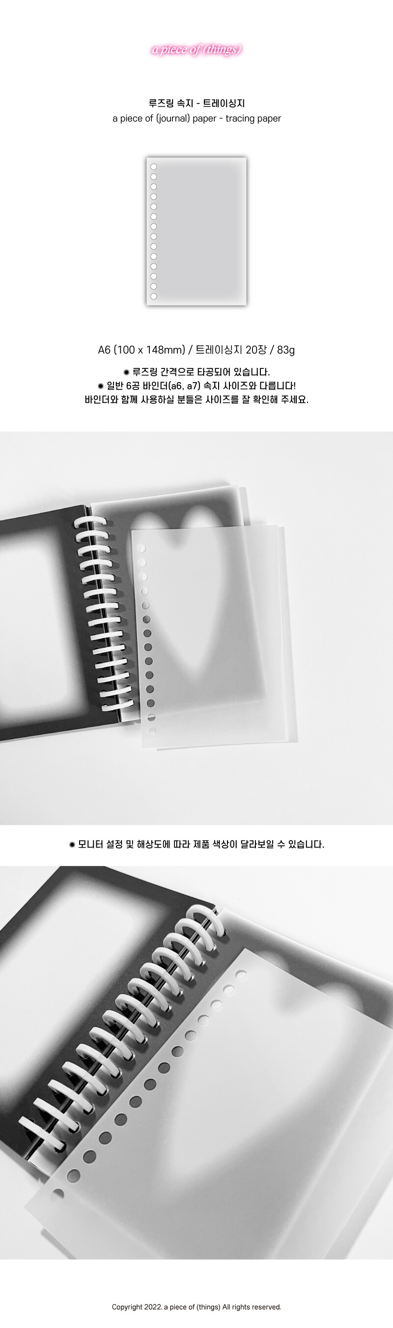 [어피스오브띵즈] a piece of (journal) paper 루즈링 속지 - 트레이싱지(20장)_재입고