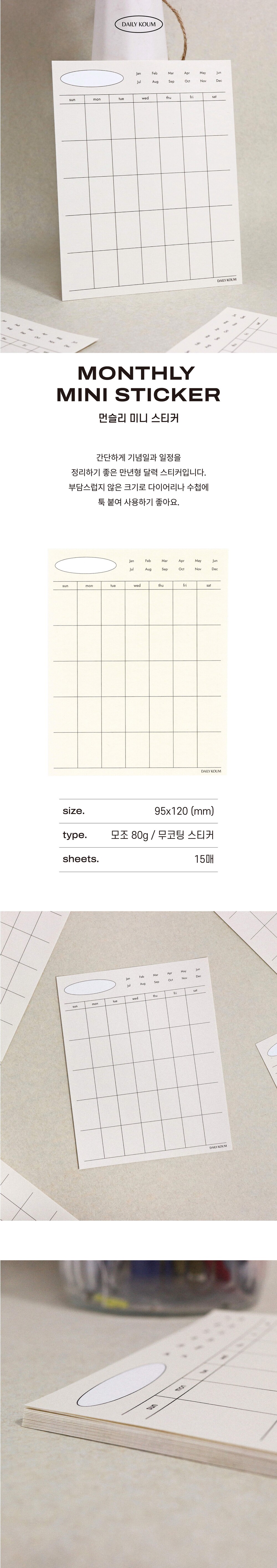 [데일리쿰] 먼슬리 미니달력 스티커_2차 재입고