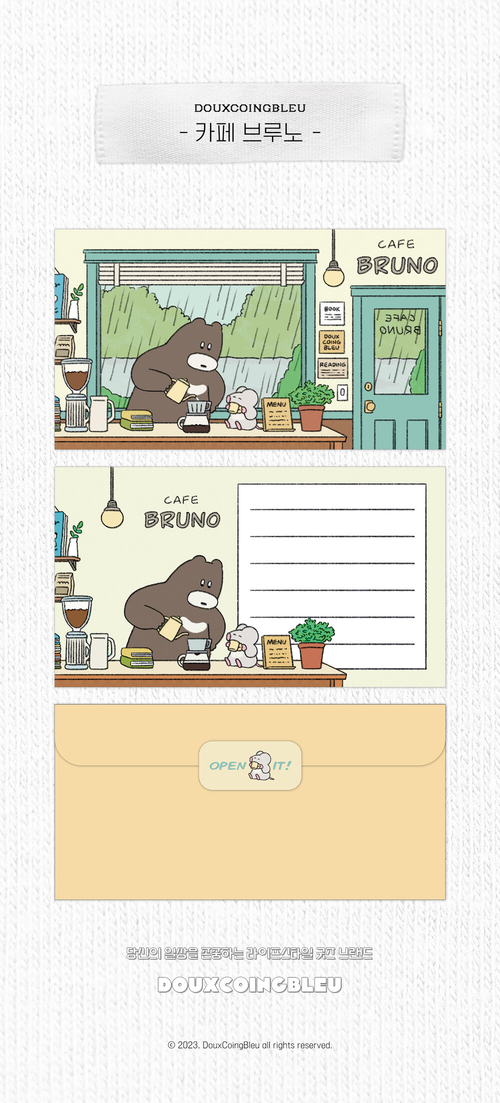 돌콩블루 마을에서 베리농장을 운영하는 커다란 곰 브루노🐻 브루노가 트리베리 거리에 작은 카페를 열었습니다. 어서오세요- 오늘의 첫 손님은- 베이지색 털이 난 조그마한 멧밭쥐 부우(Boo)와 바로바로- 여러분입니다-🌿 추적추적 여름비가 내리는 오늘, 브루노 취향의 멋진 음악과 함께 갓 내린 커피 한잔 하고 가세요☕️