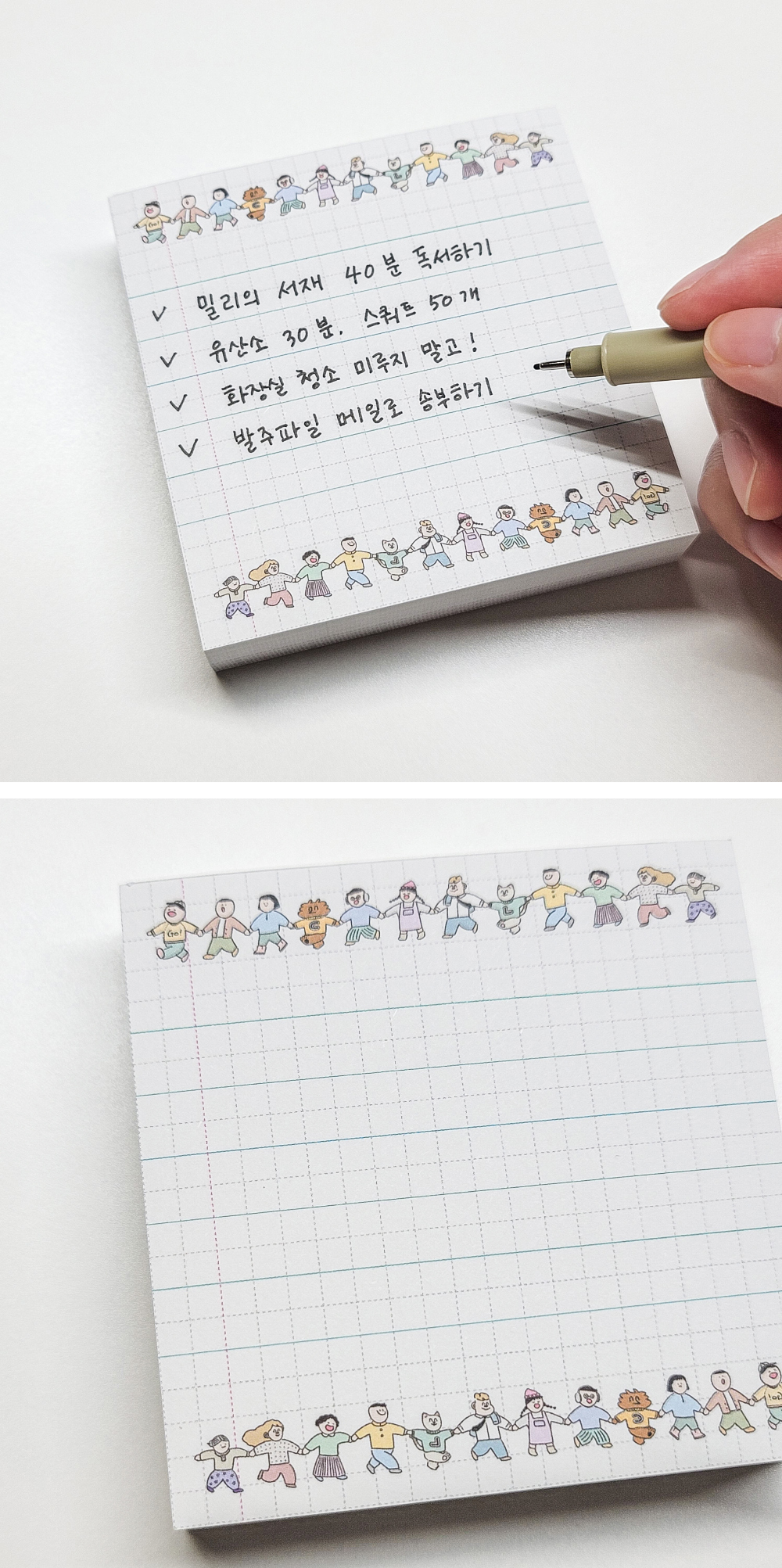 [돌콩블루] 손에 손잡고 모눈 떡메모지