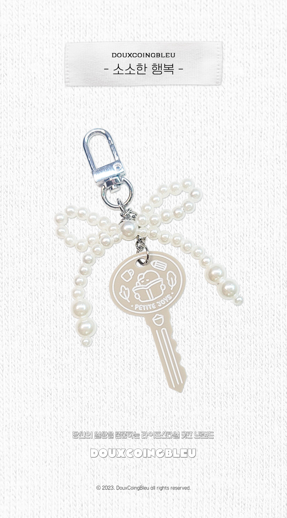 [돌콩블루] 진주리본 각인키링 소소한 행복