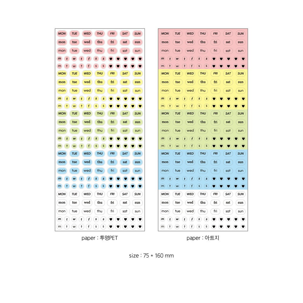 [단델리온] 파스텔 요일 씰스티커 (투명/아트지)
