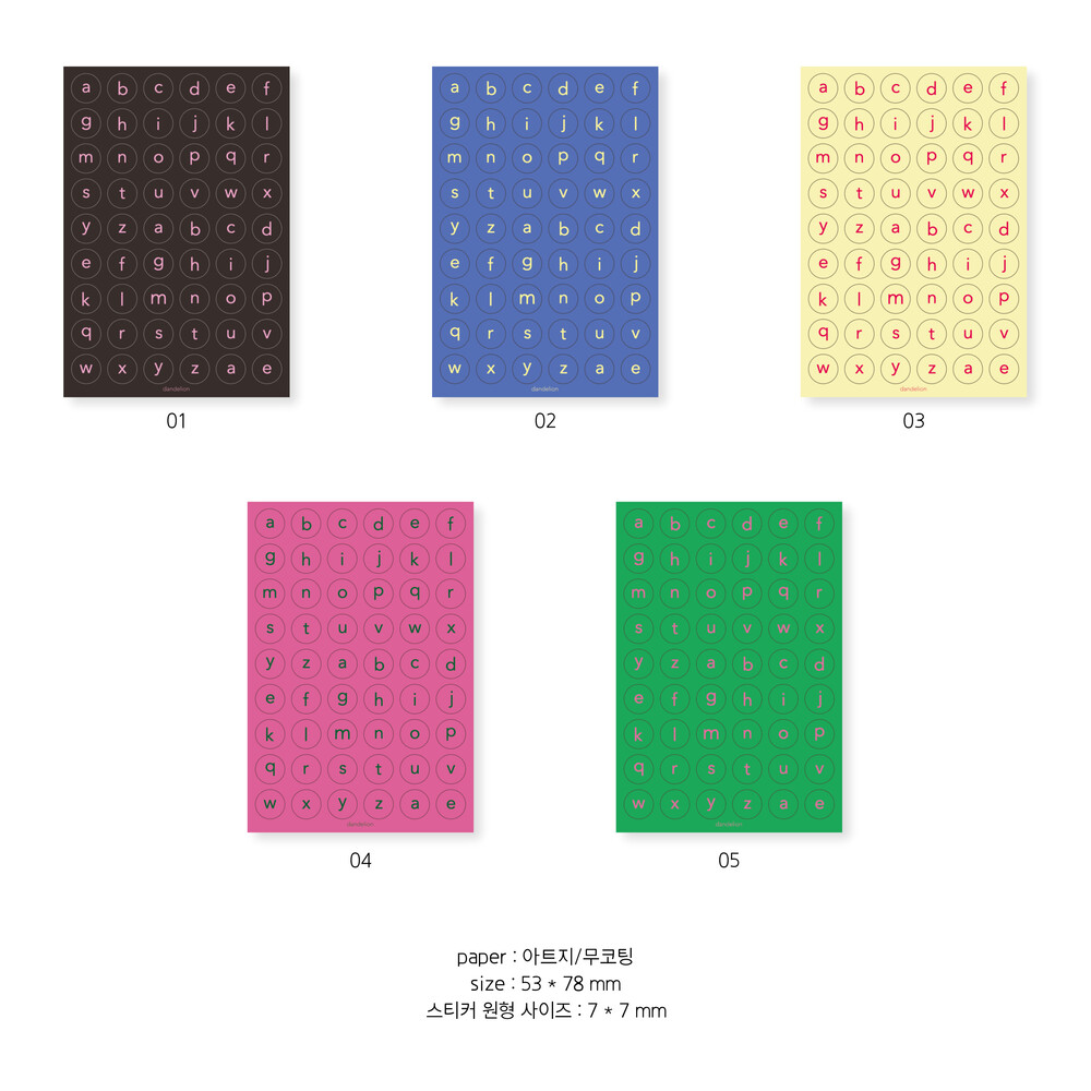 [단델리온] 원형 알파벳 씰스티커ver.1 (5col)