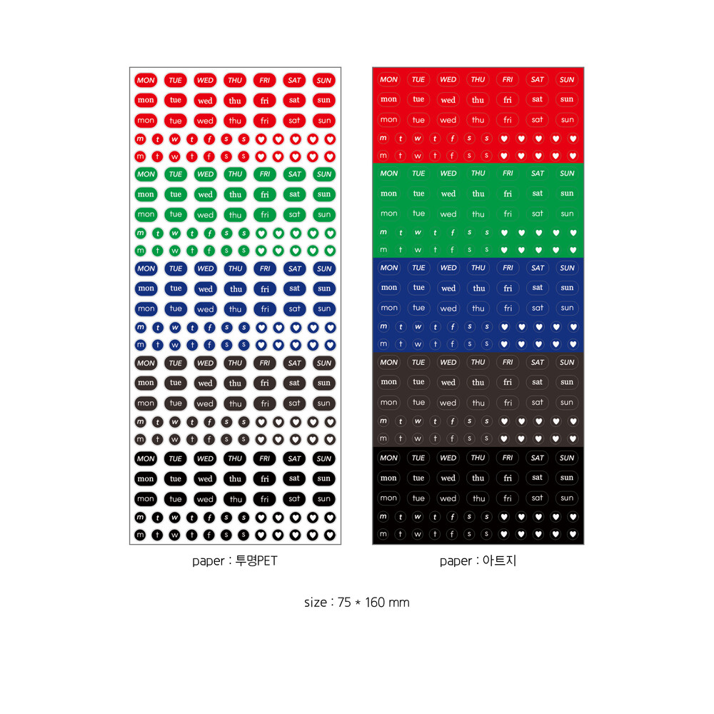 [단델리온] 비비드 요일 씰스티커 (투명/아트지)