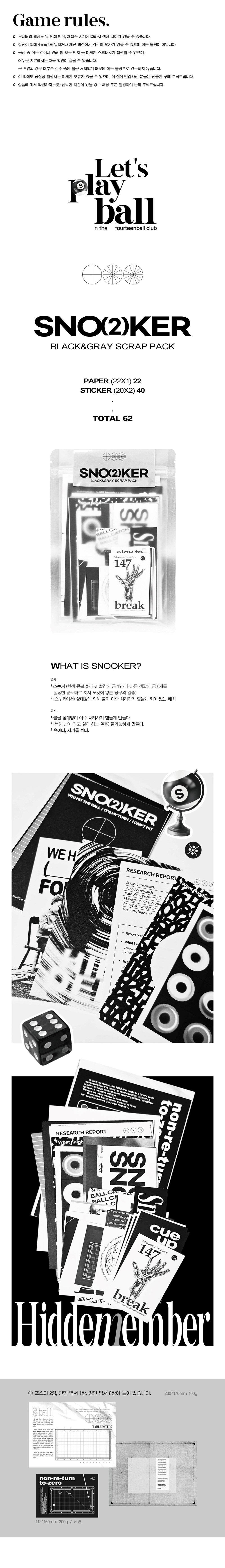 [포틴볼클럽] SNOOKER BLACK&GRAY scrap pack 스누커 스크랩팩