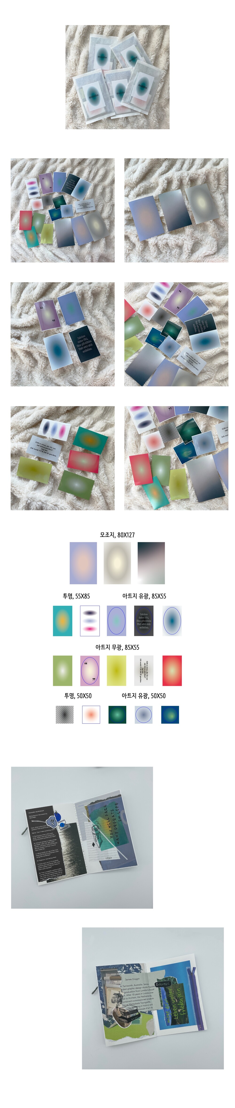 - 투명4매, 모조지 3매, 유광아트지 8매, 무광아트지 3매