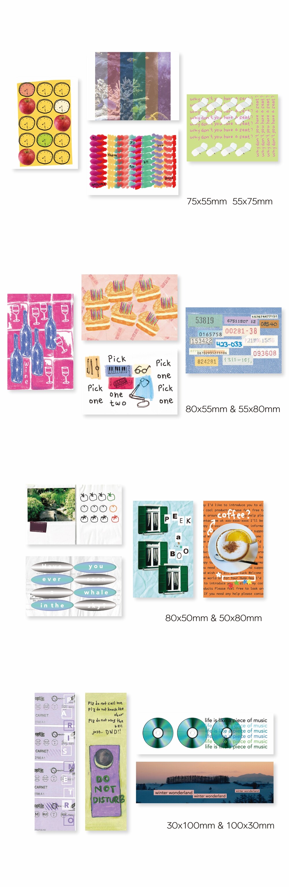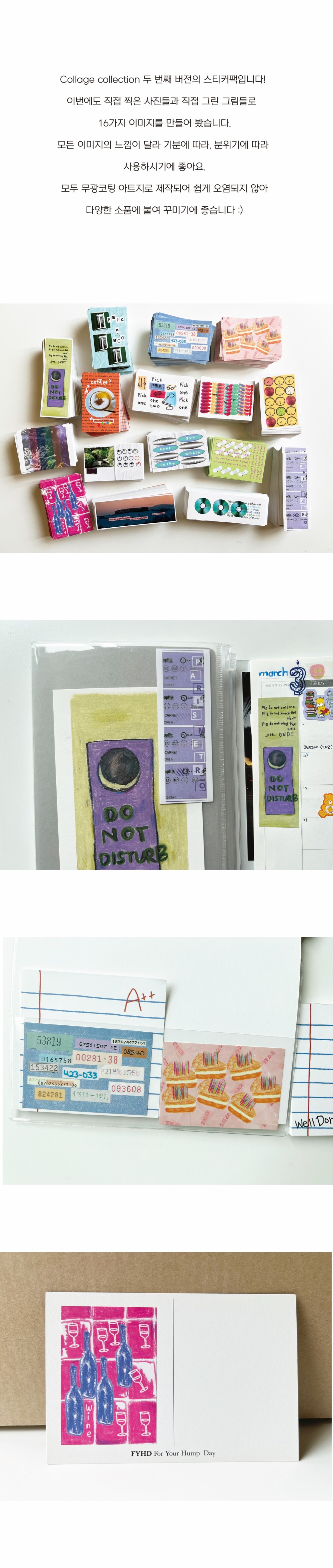 직접 찍은 사진들과 그린 그림들로 제작된 16가지 이미지들.
