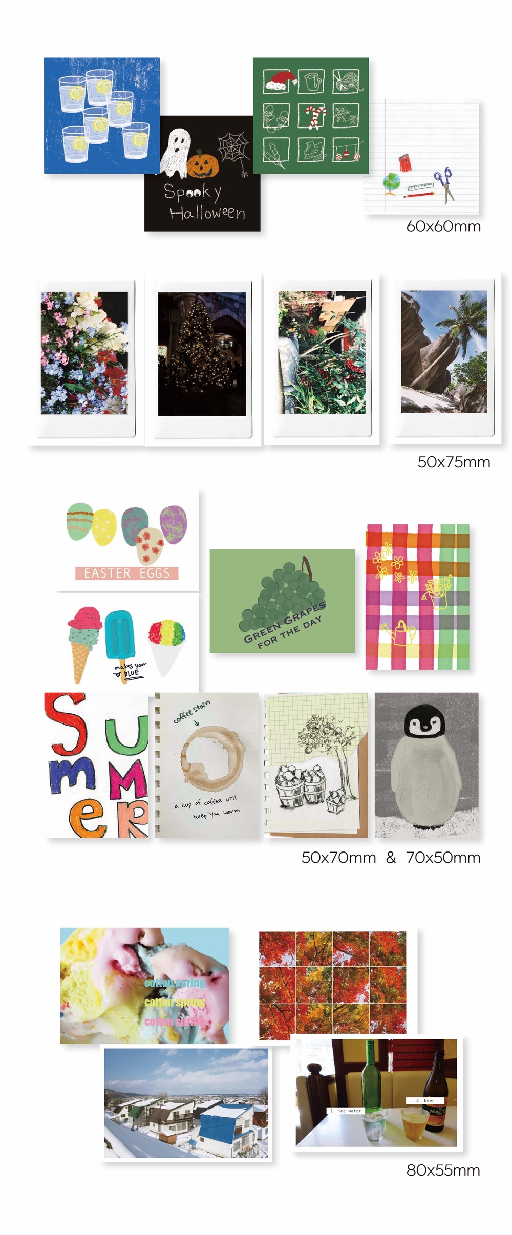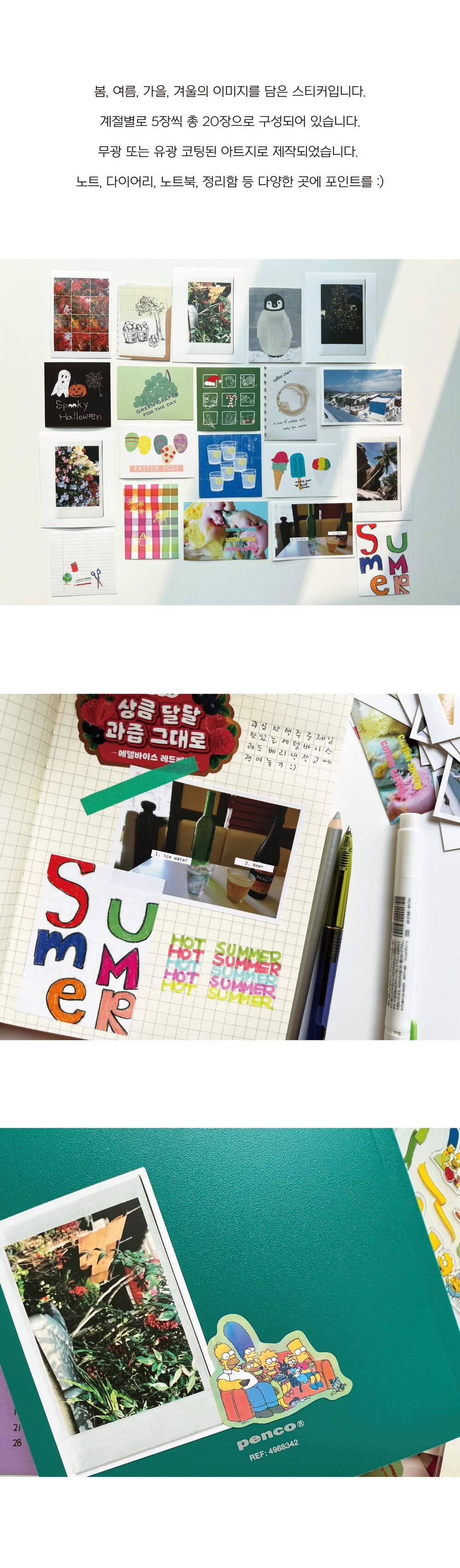 봄, 여름, 가을, 겨울의 이미지를 담은 스티커.