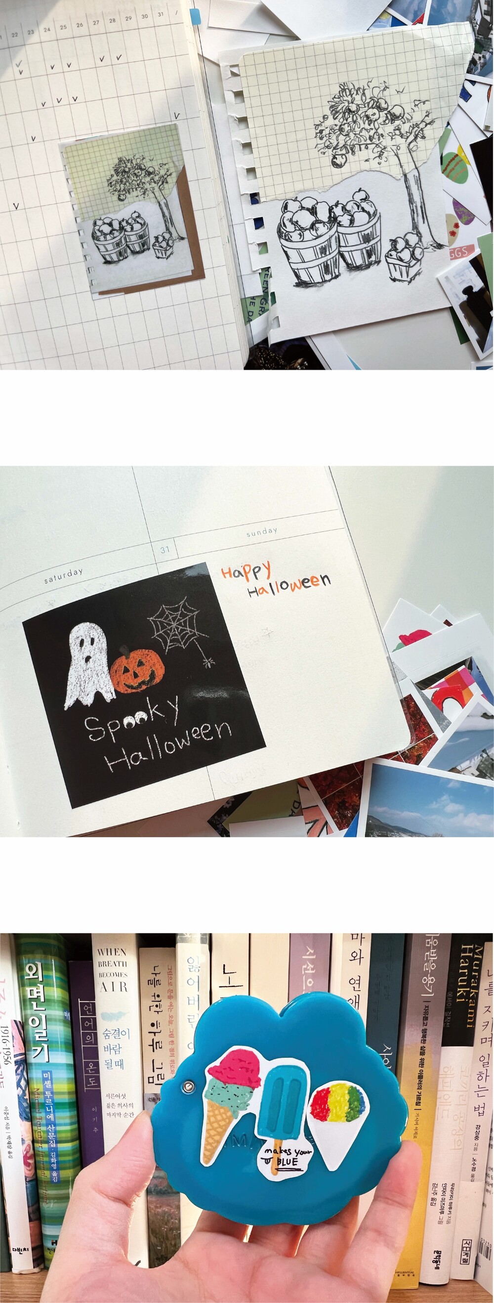 노트, 다이어리, 노트북, 정리함 등 다양한 곳에 포인트를 :)