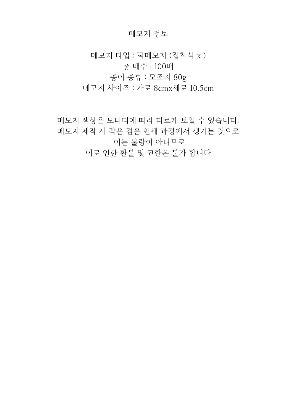 - 떡메모지 접착x