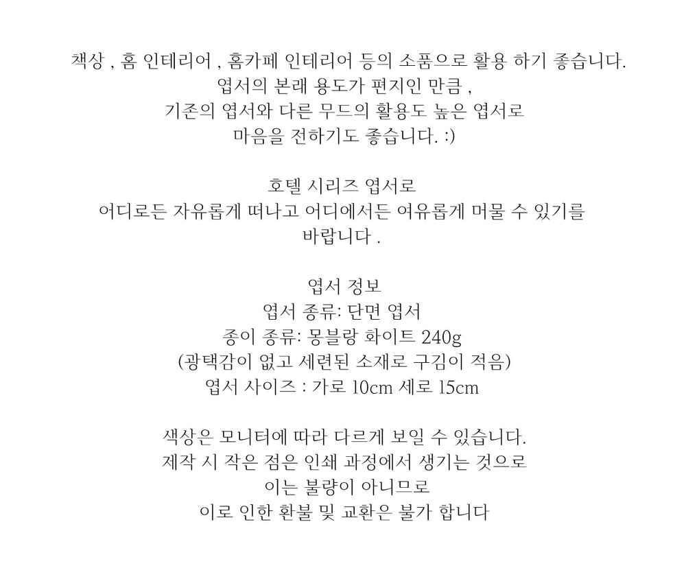 - 단면 엽서 / 몽블랑 화이트 240g / 10*15cm