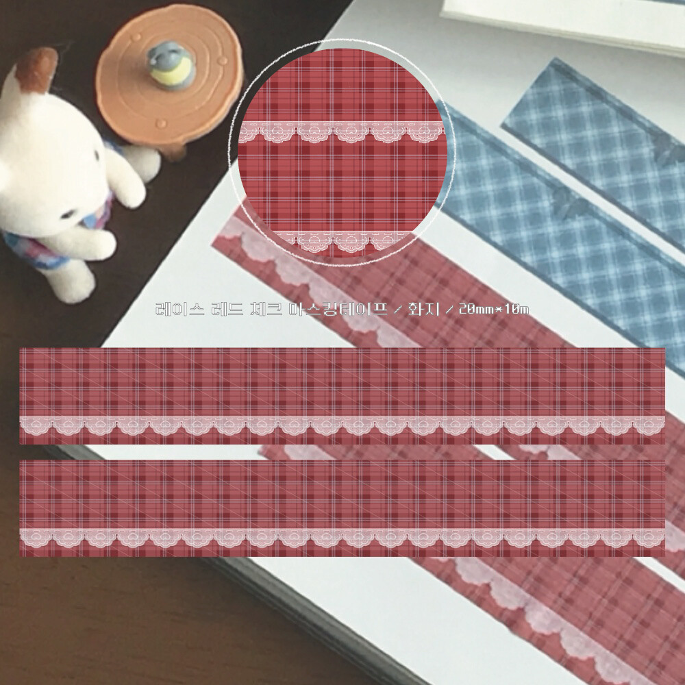 [김헹푸] 레이스 레드 체크 마스킹테이프