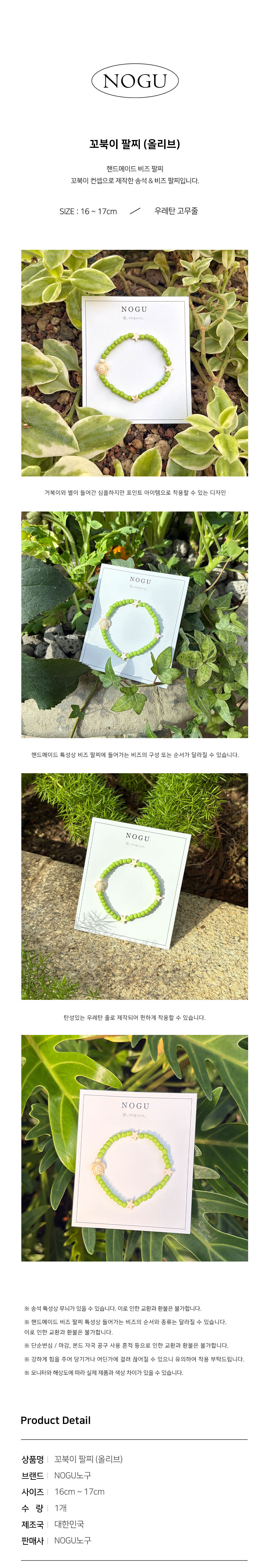 [NOGU노구] 꼬북이 비즈팔찌 (올리브)