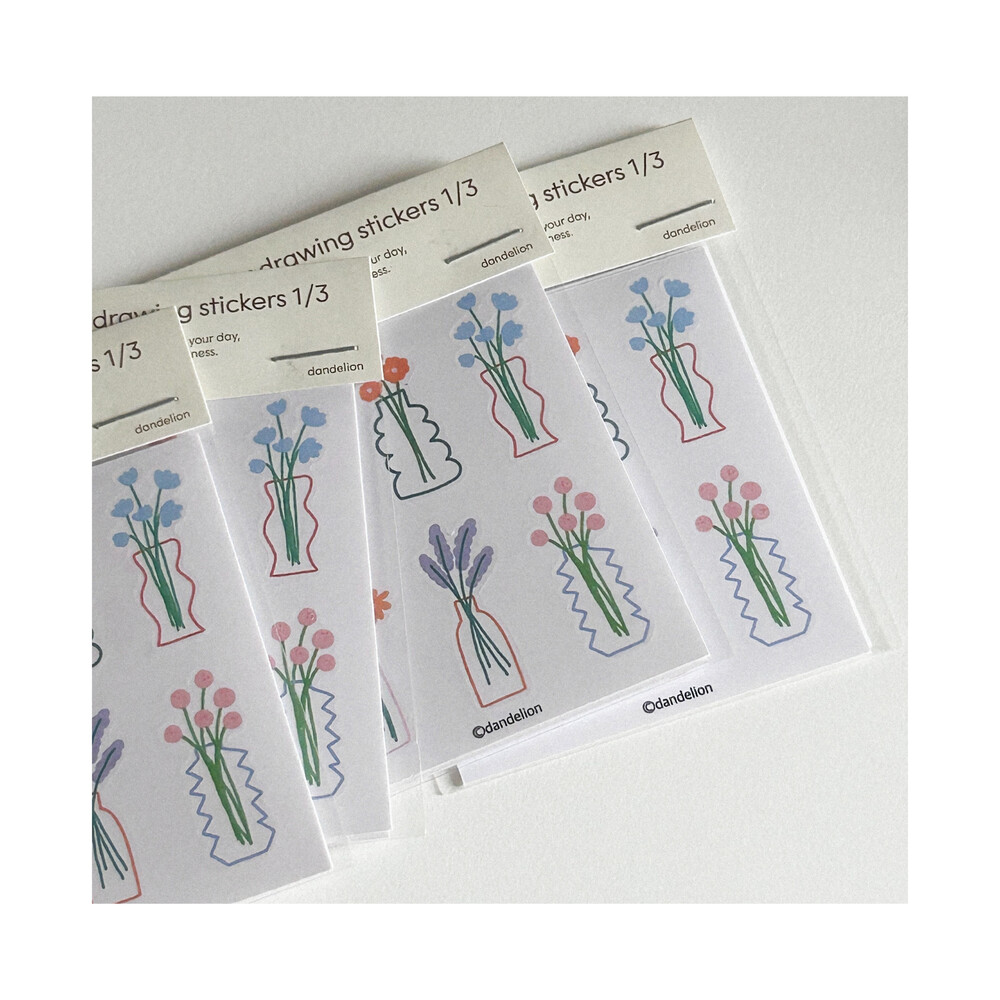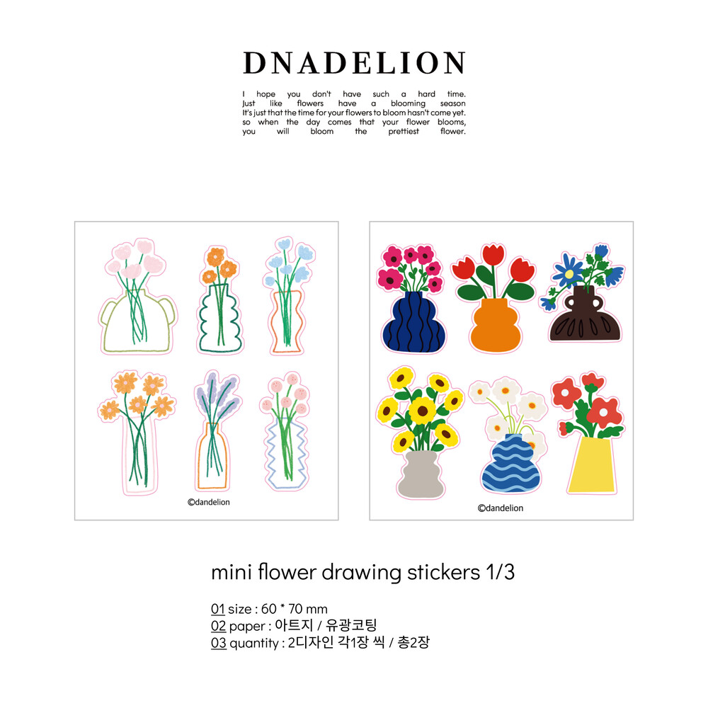 [단델리온] 미니 플라워 드로잉 1/3 스티커 세트