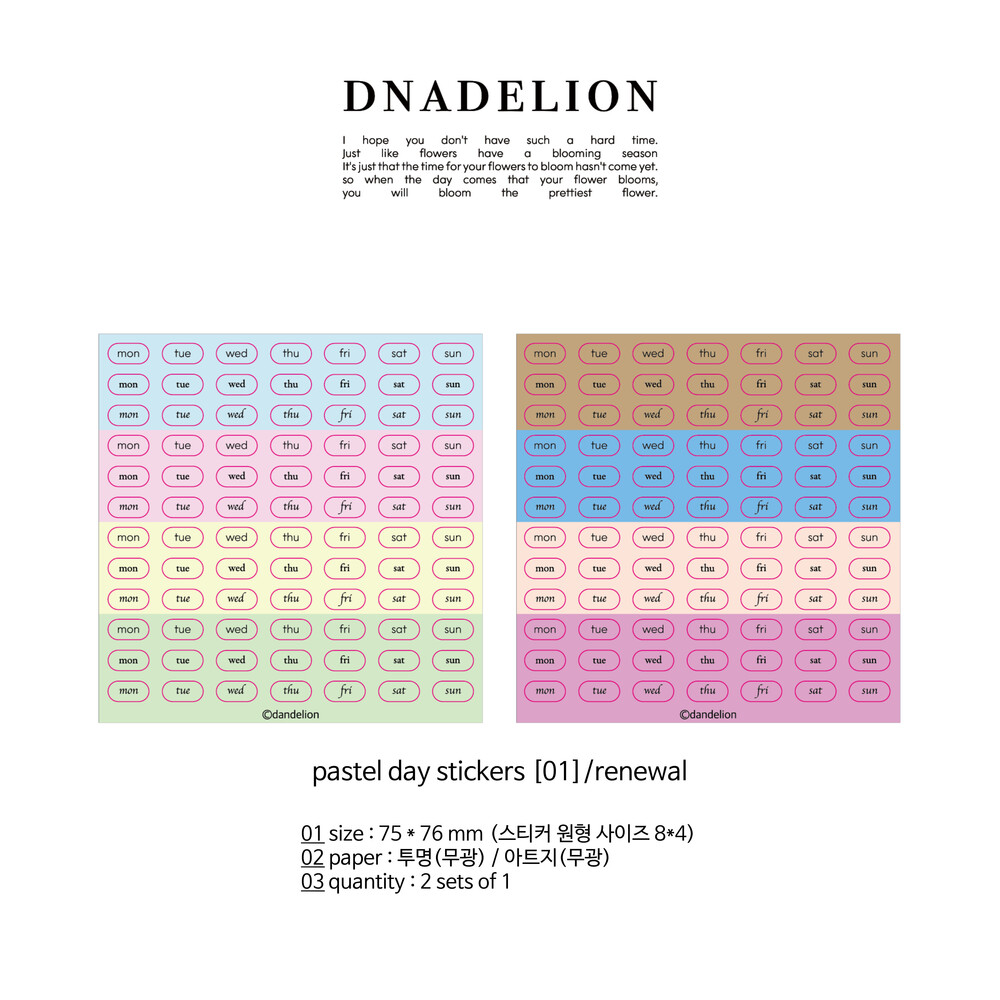 [단델리온] 파스텔 요일 스티커[01]/리뉴얼