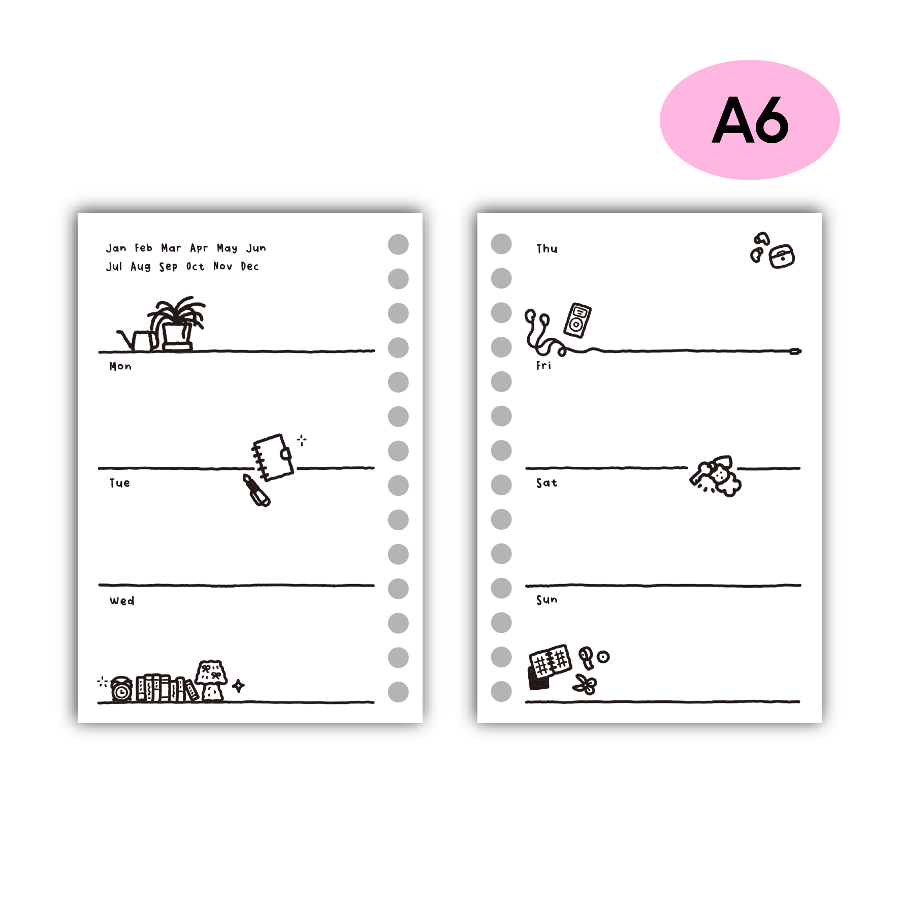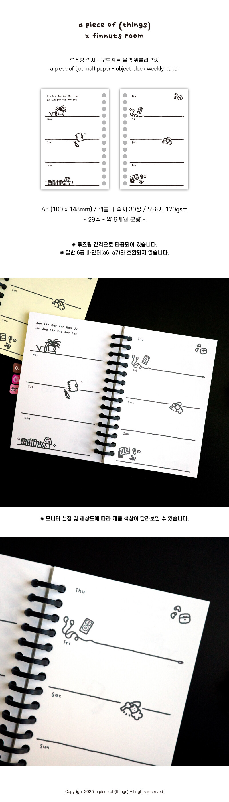 [어피스오브띵즈] 피너츠룸콜라보 A6 루즈링 속지 - 오브젝트 블랙 위클리 속지(30장)