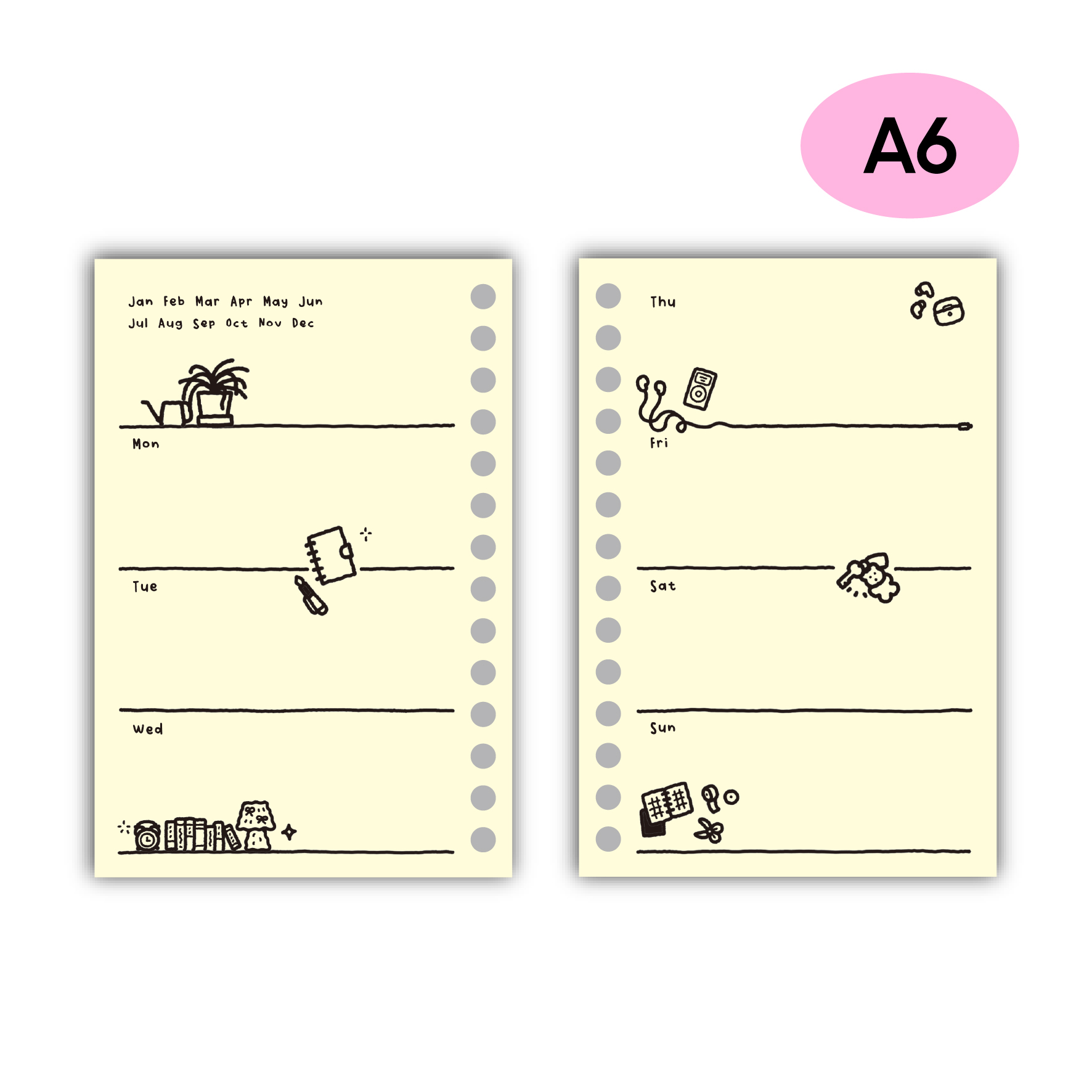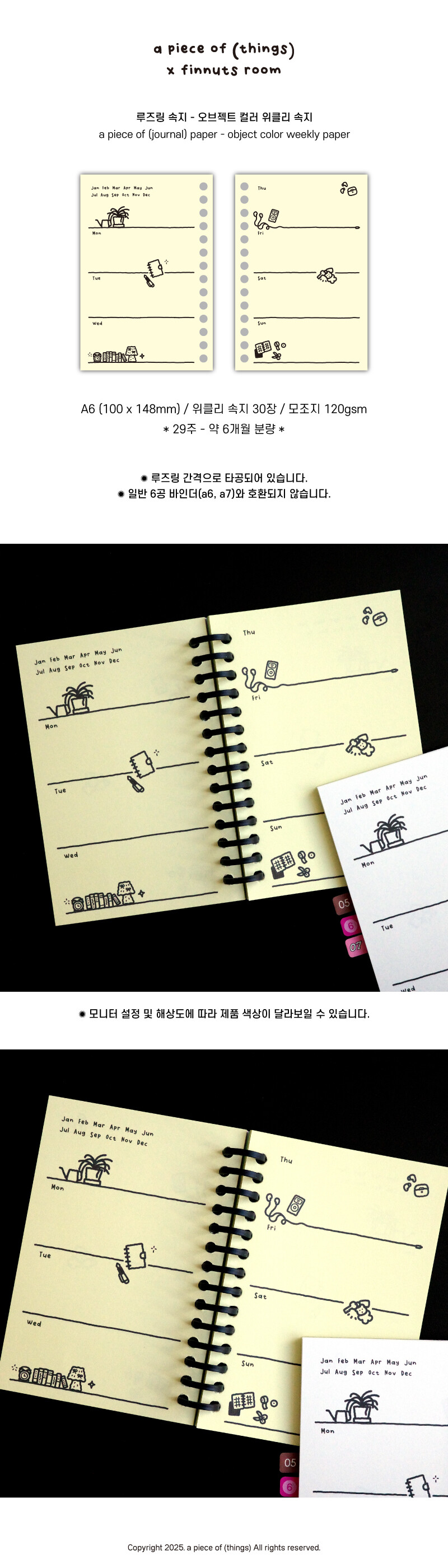 [어피스오브띵즈] 피너츠룸콜라보 A6 루즈링 속지 - 오브젝트 컬러 위클리 속지(30장)