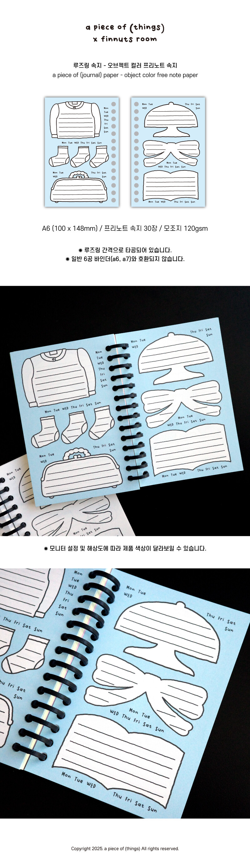[어피스오브띵즈] 피너츠룸콜라보 A6 루즈링 속지 - 오브젝트 컬러 프리노트 속지(30장)