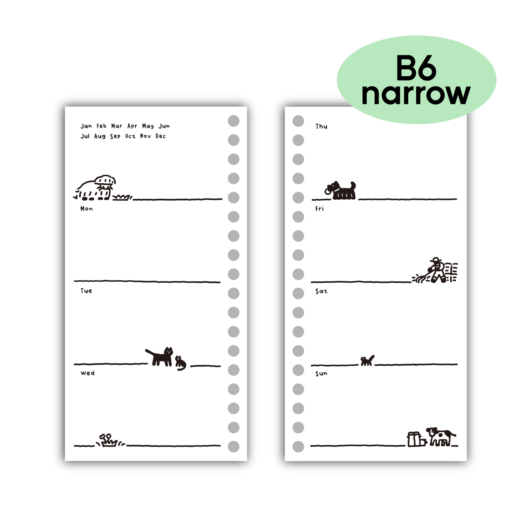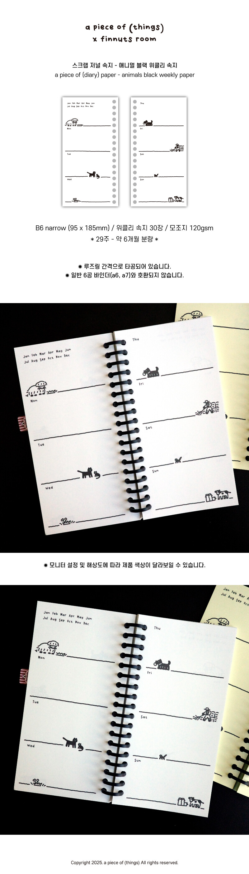 [어피스오브띵즈] 피너츠룸콜라보 B6 내로우 스크랩 저널 속지 - 애니멀 블랙 위클리 속지(30장)