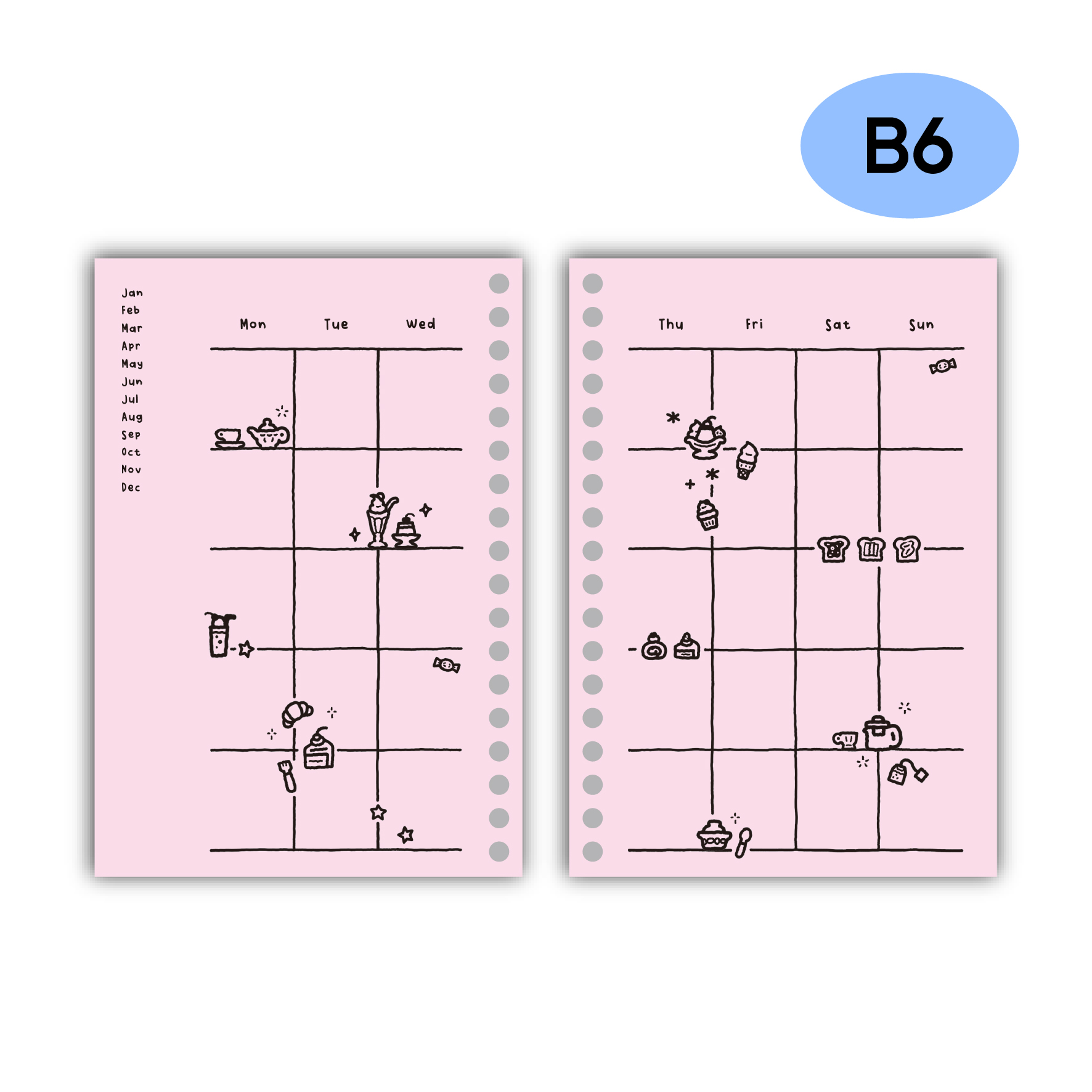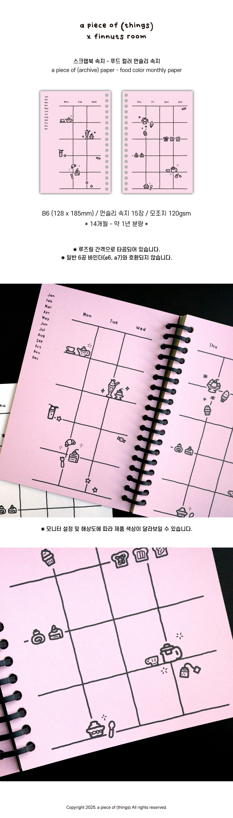 [어피스오브띵즈] 피너츠룸콜라보 B6 스크랩북 속지 - 푸드 컬러 먼슬리 속지(15장)