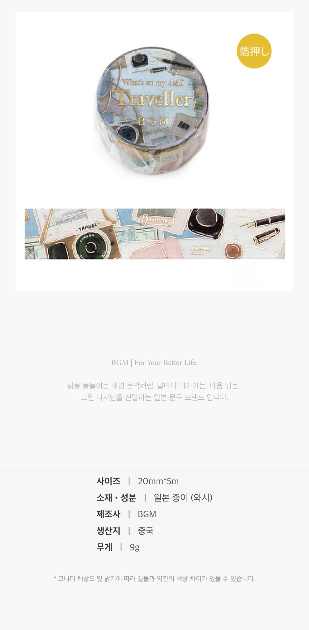 [jpg.제이피지잡화점] BGM 금박 마스킹테이프 나의 책상 여행가 에디션