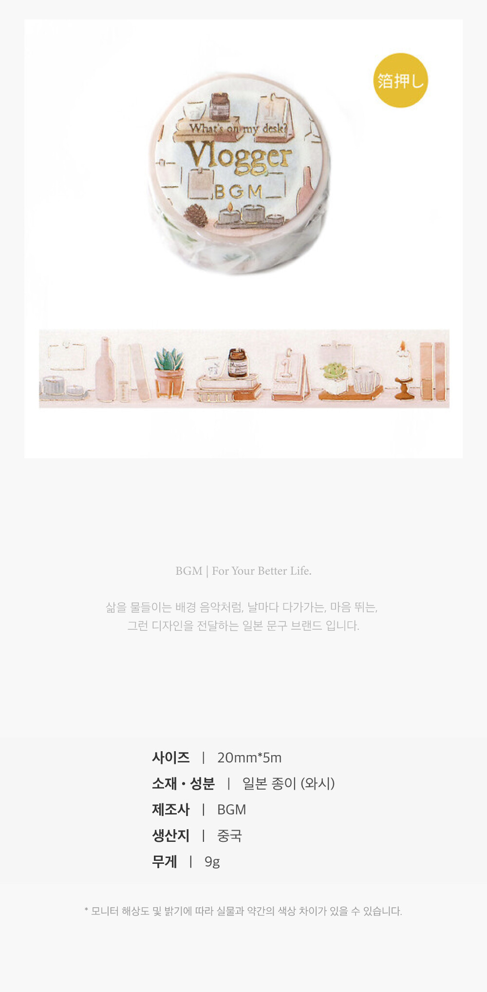 [jpg.제이피지잡화점] BGM 금박 마스킹테이프 나의 책상 브이로거 에디션