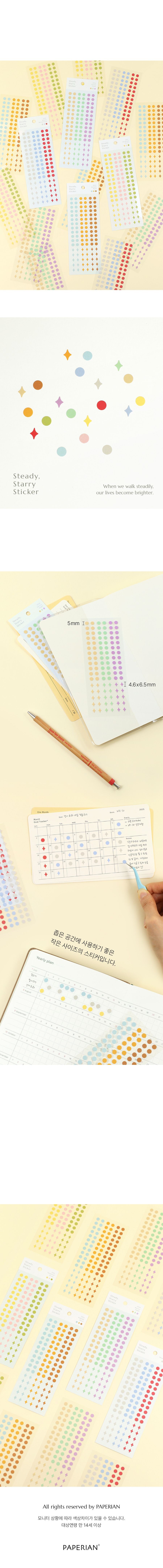 5mm 사이즈의 원형, 별빛으로 구성된 스티커.