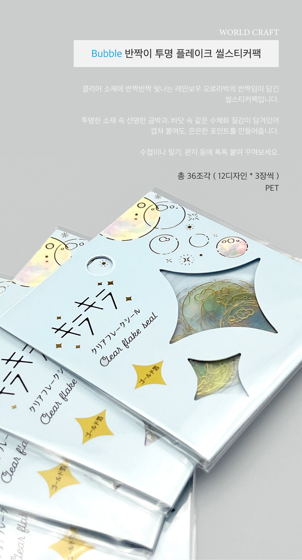 [jpg.제이피지잡화점] 월드크래프트 Bubble 반짝이 투명 플레이크 씰스티커팩