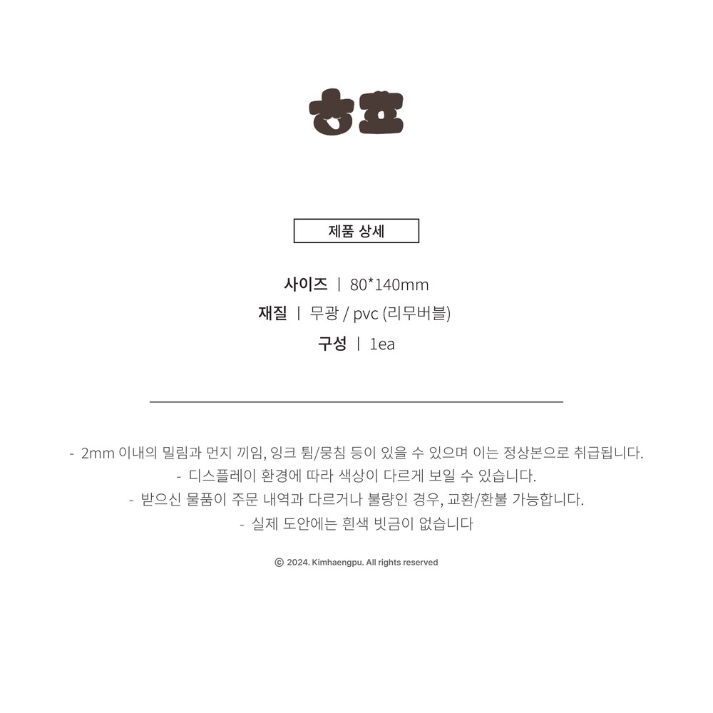 - 80*140mm / 무광 / pvc 리무버블 / 1장